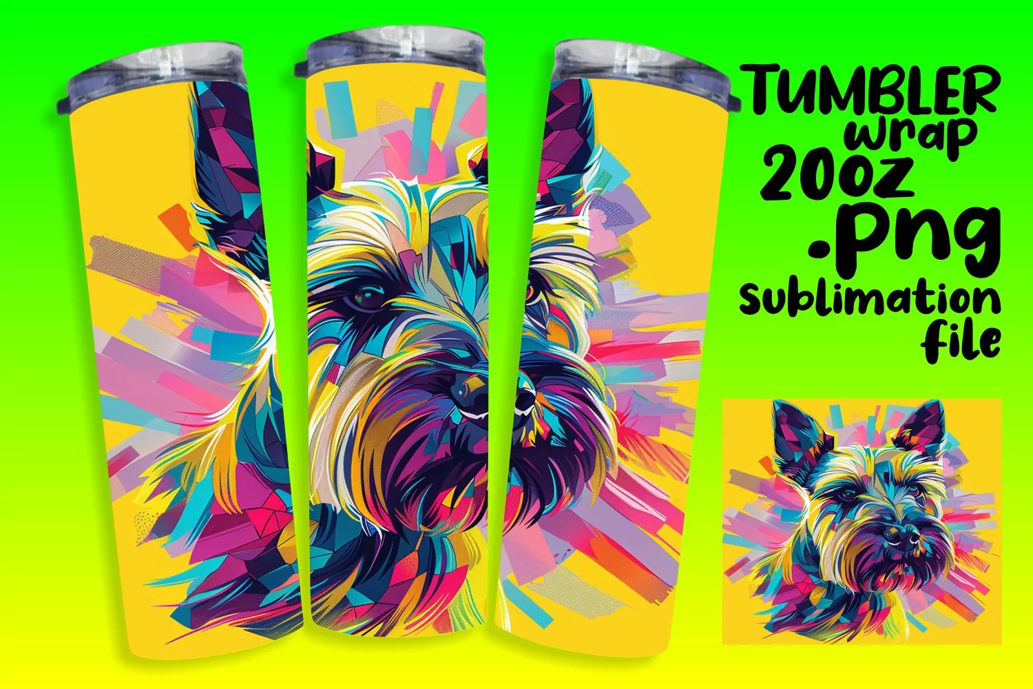 Striking Abstract Dog Tumbler Wrap 20oz Design