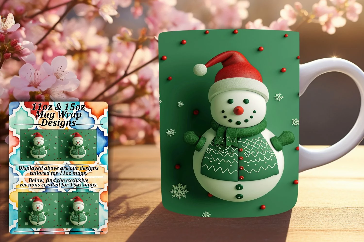3D Snowman Holiday Mug Wrap Sublimation Ready PNG example image 1