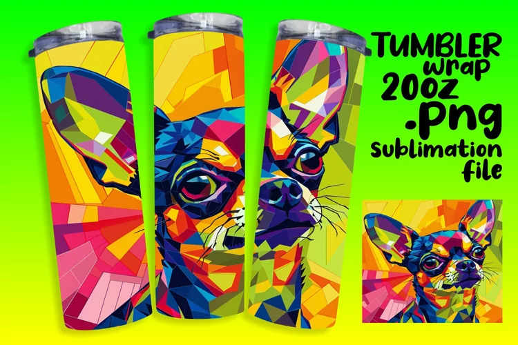 Artful Colorful Dog Tumbler Wrap 20oz Design
