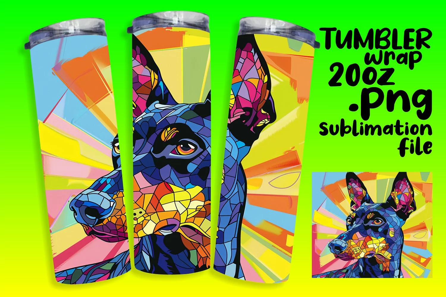 Expressive Abstract Dog Tumbler Wrap 20oz Art