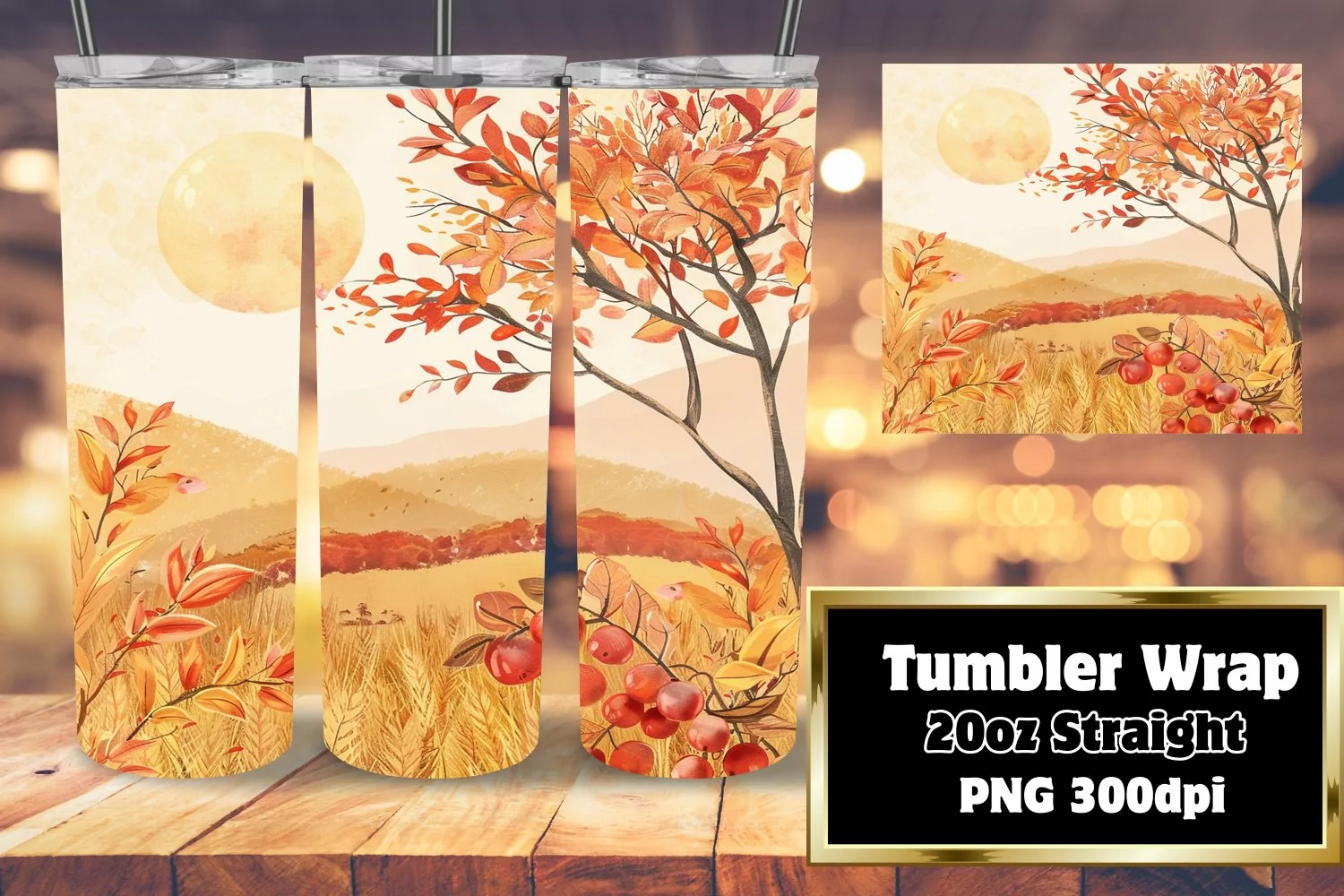 Fall 20oz Tumbler Wrap | Watercolor Autumn Sublimation example image 1