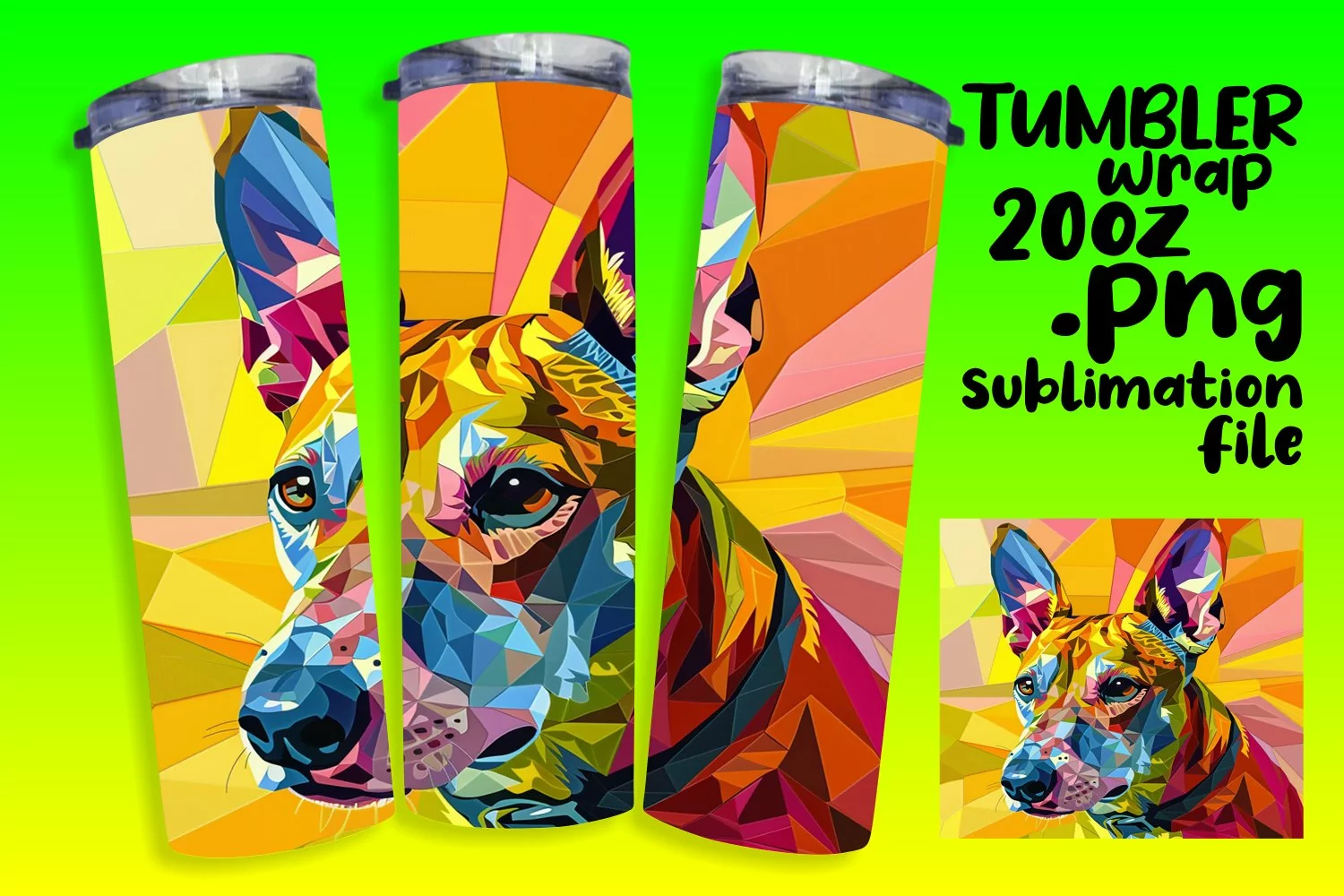 Bright and Bold Abstract Dog Tumbler Wrap 20oz example image 1