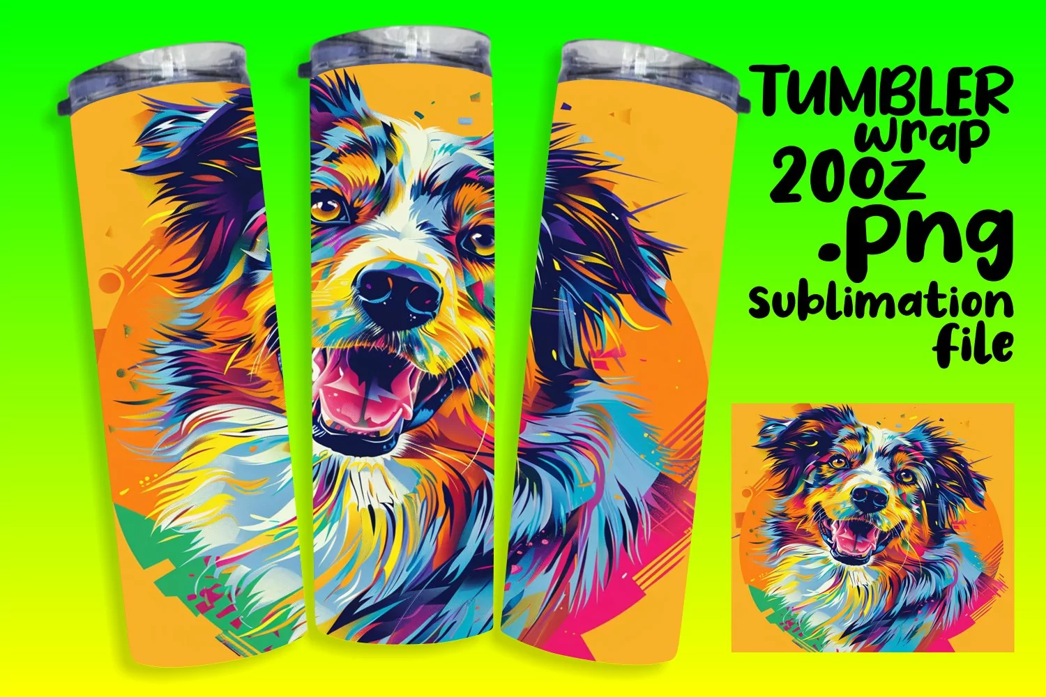 Elegant Abstract Dog Wrap 20oz Sublimation Art example image 1