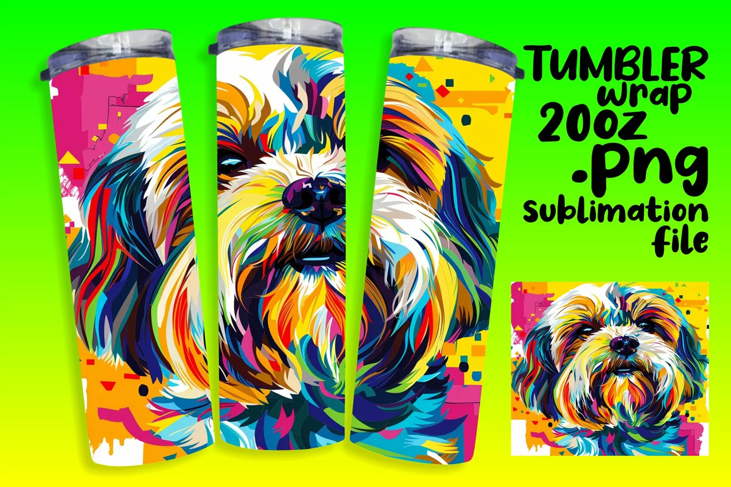 Bold Colorful Abstract Dog Wrap 20oz Design