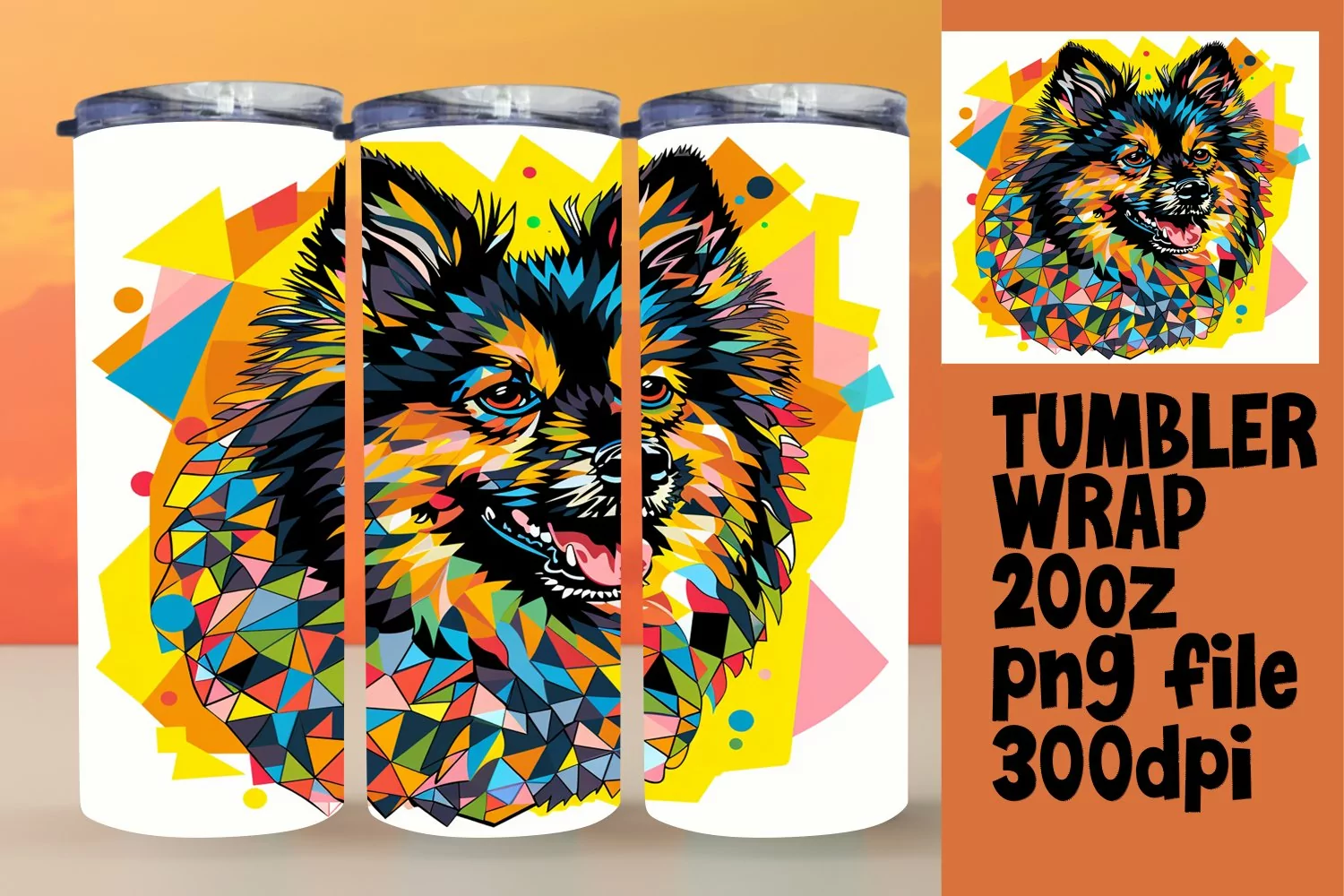 Radiant Abstract Dog Tumbler Wrap 20oz Design