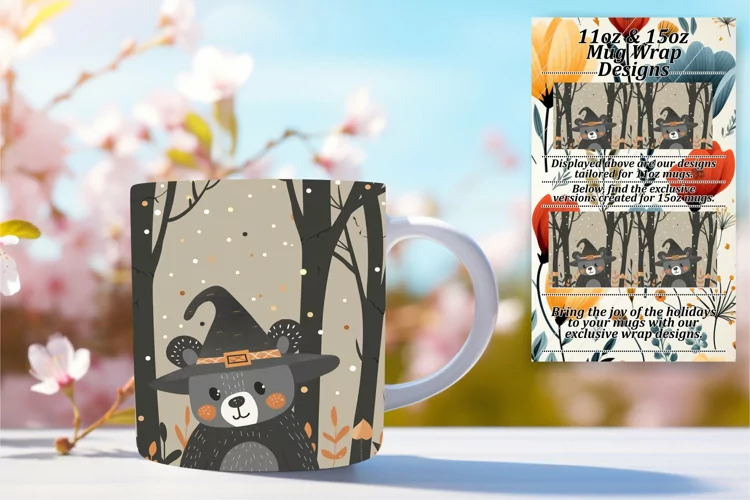 Autumn Bear Halloween Wrap Mug Sublimation Art 11oz/15oz