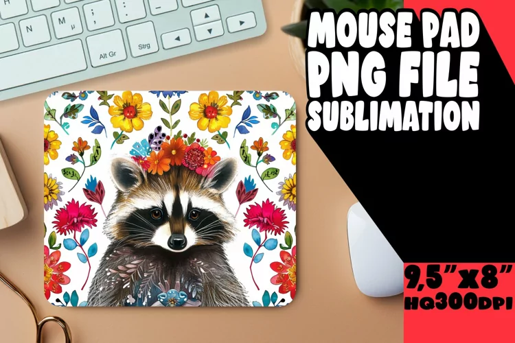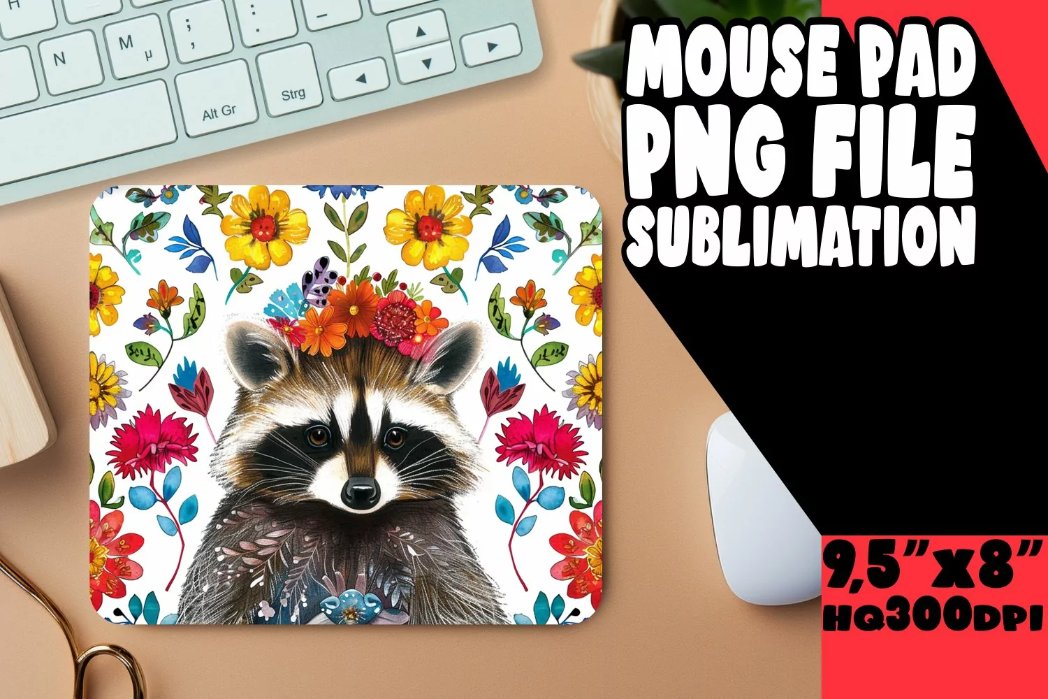 Mouse Pad Office Supplies Cute Animals Png Sublimation Design Raccoon Flowers Sublimation Printing Raccoon Design Mouse Pad Design Mouse Mat Blooming Raccoon