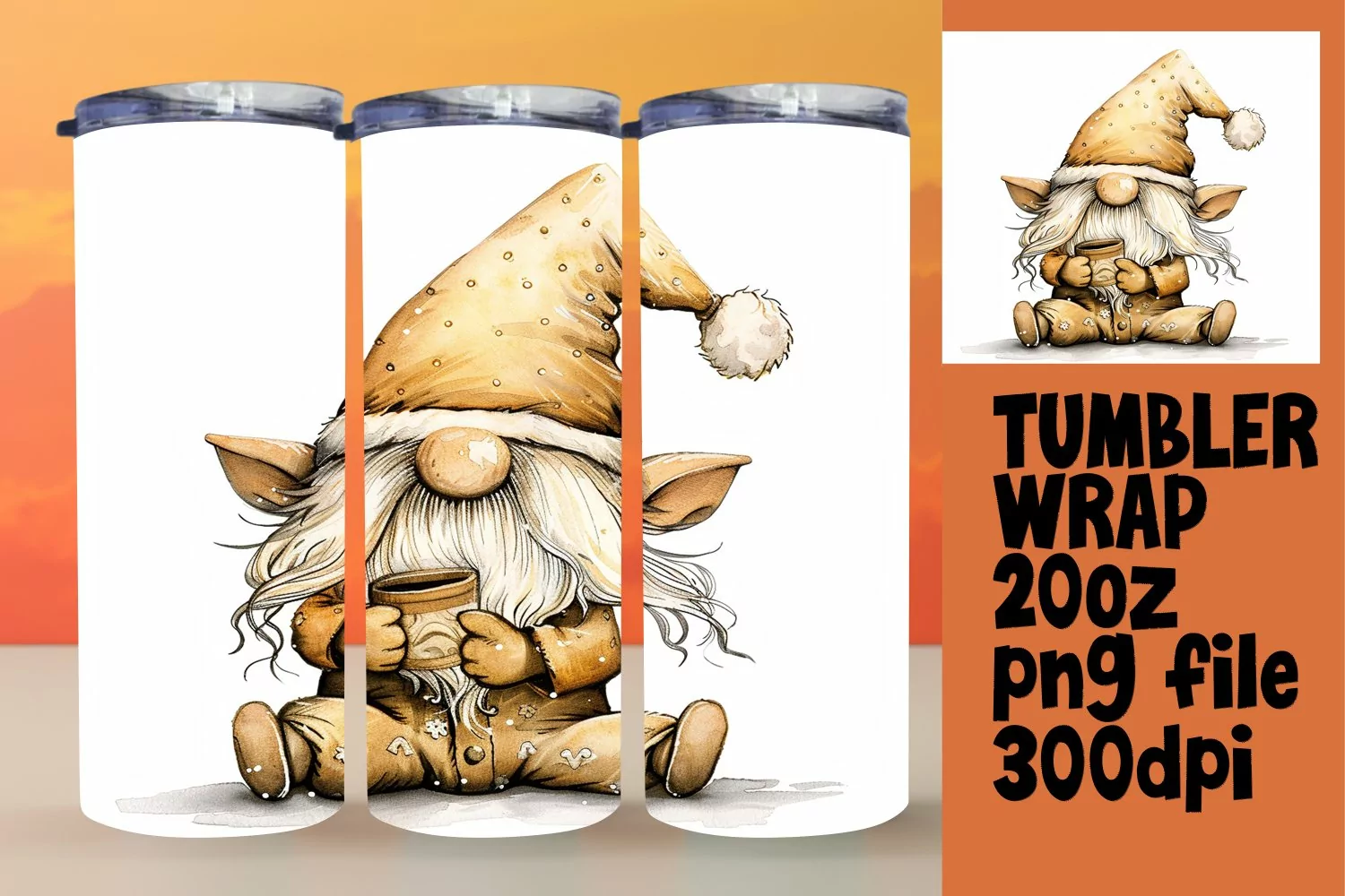 Watercolor Gnome Holiday Tumbler Wrap 20oz Sublimation example image 1