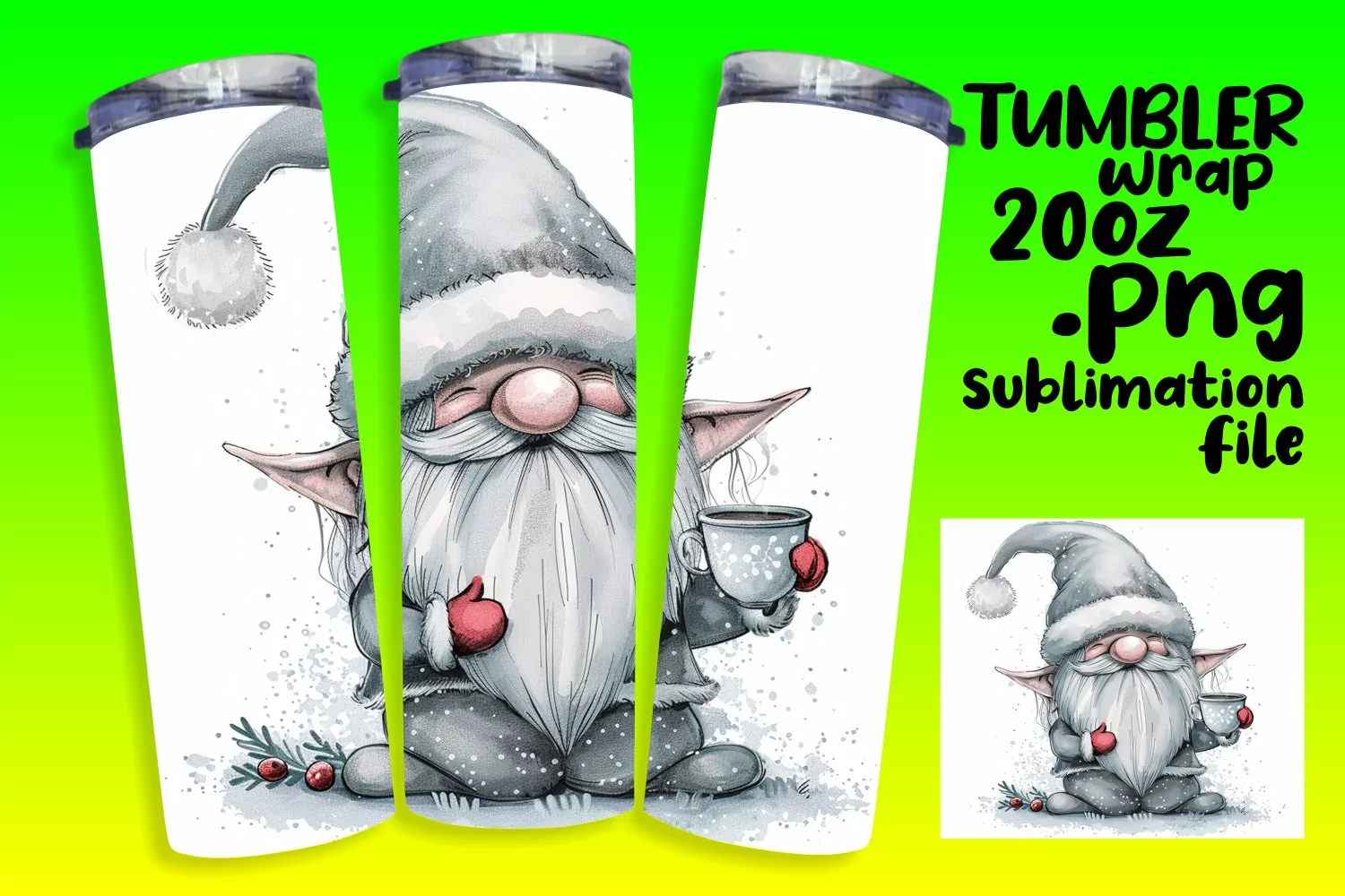 Watercolor Christmas Gnome Wrap 20oz Tumbler Sublimation example image 1