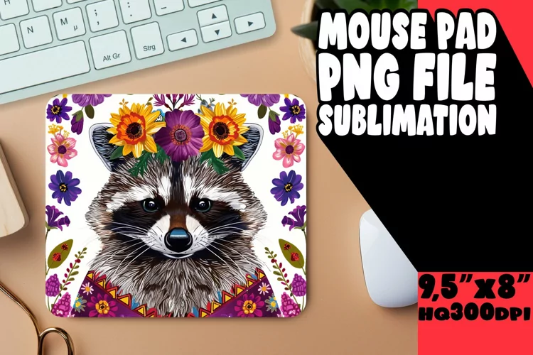 Mouse Pad Office Supplies Cute Animals Png Sublimation Design Raccoon Flowers Sublimation Printing Raccoon Design Mouse Pad Design Mouse Mat Blooming Raccoon