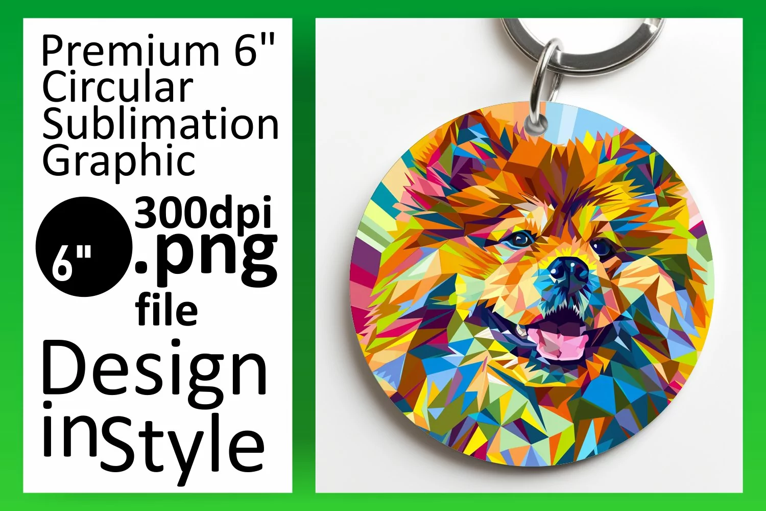 Bold and Dynamic Dog Round Design Keychain Sublimation