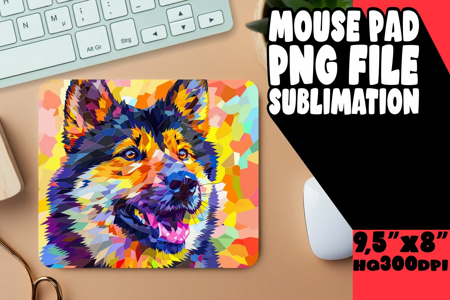 Whimsical Colorful Dog Mouse Pad Design PNG example image 1