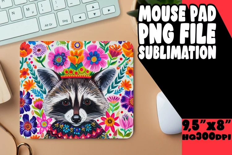 Mouse Pad Office Supplies Cute Animals Png Sublimation Design Raccoon Flowers Sublimation Printing Raccoon Design Mouse Pad Design Mouse Mat Blooming Raccoon
