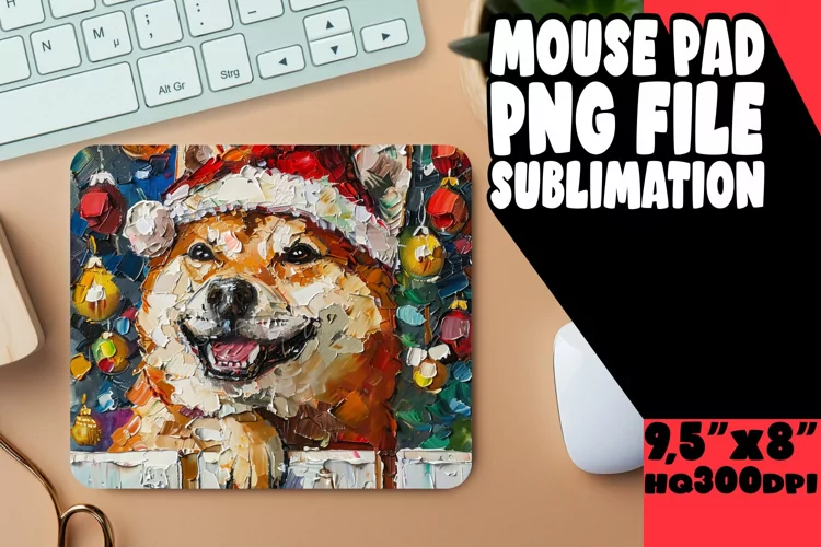 Merry Christmas Mouse Pad Office Supplies Sublimation Design Sublimation Printing Dog Watercolor Png Christmas Dog Png Mouse Pad Design Mouse Mat Santa Claus Dog
