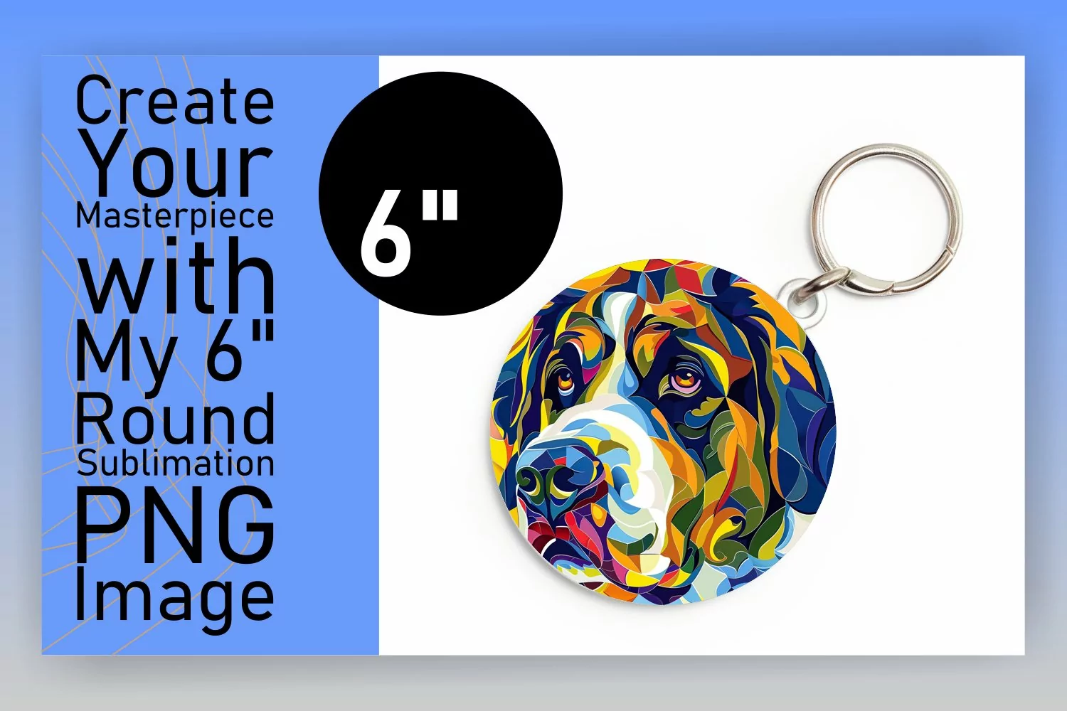 Fun and Artistic Dog Round Design Keychain Sublimation