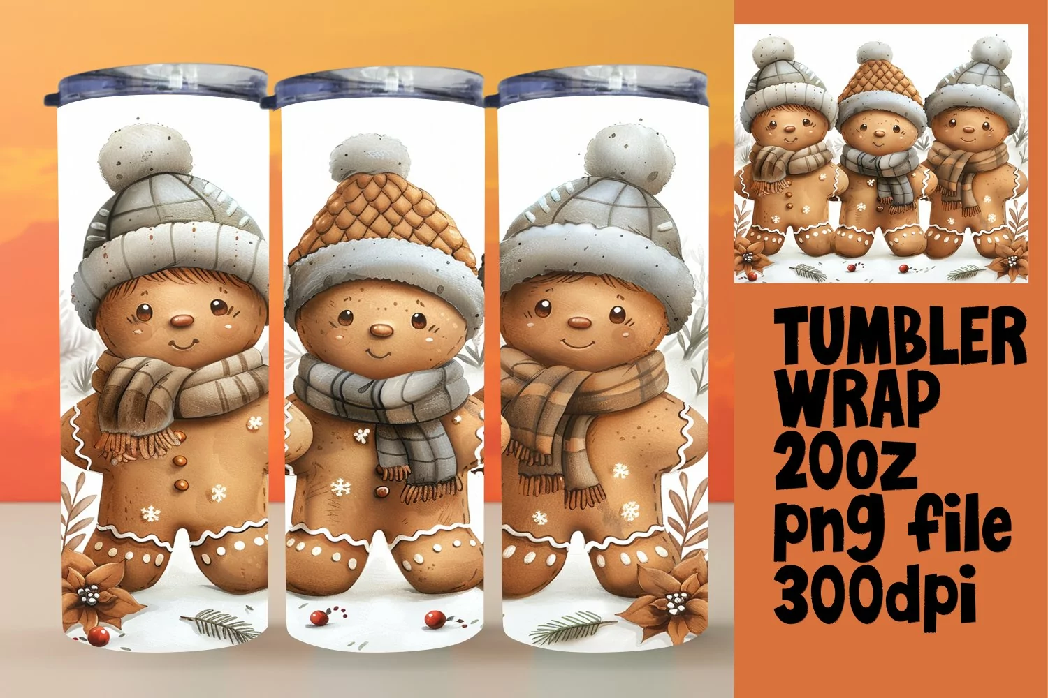 Gingerbread Man Pattern Wrap 20oz Holiday Design example image 1