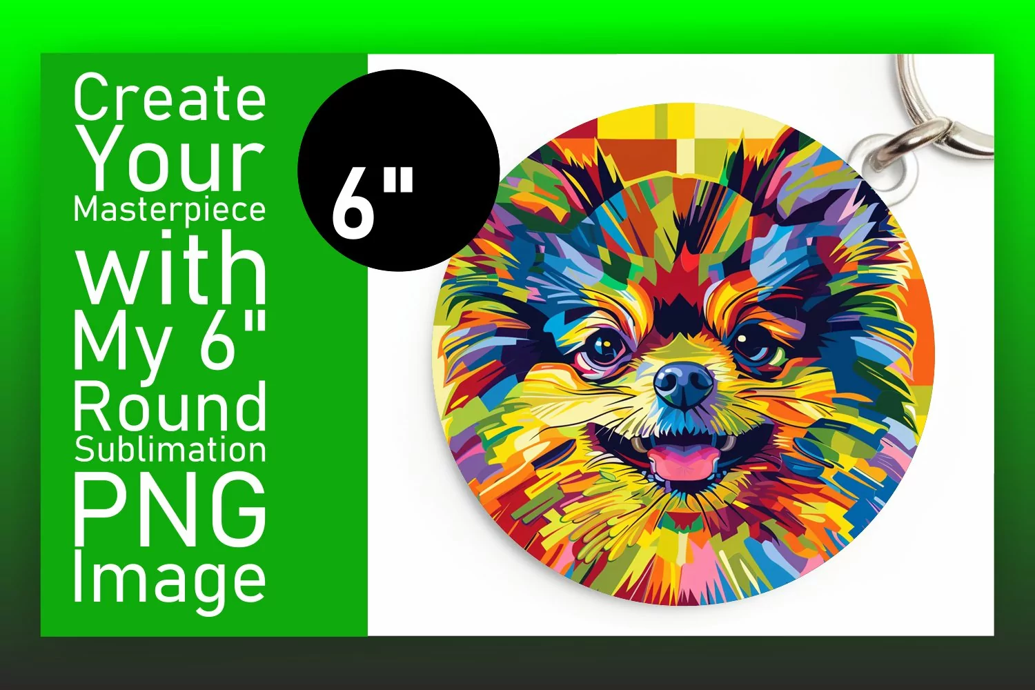 Creative Dog Round Design Keychain Sublimation Pattern example image 1