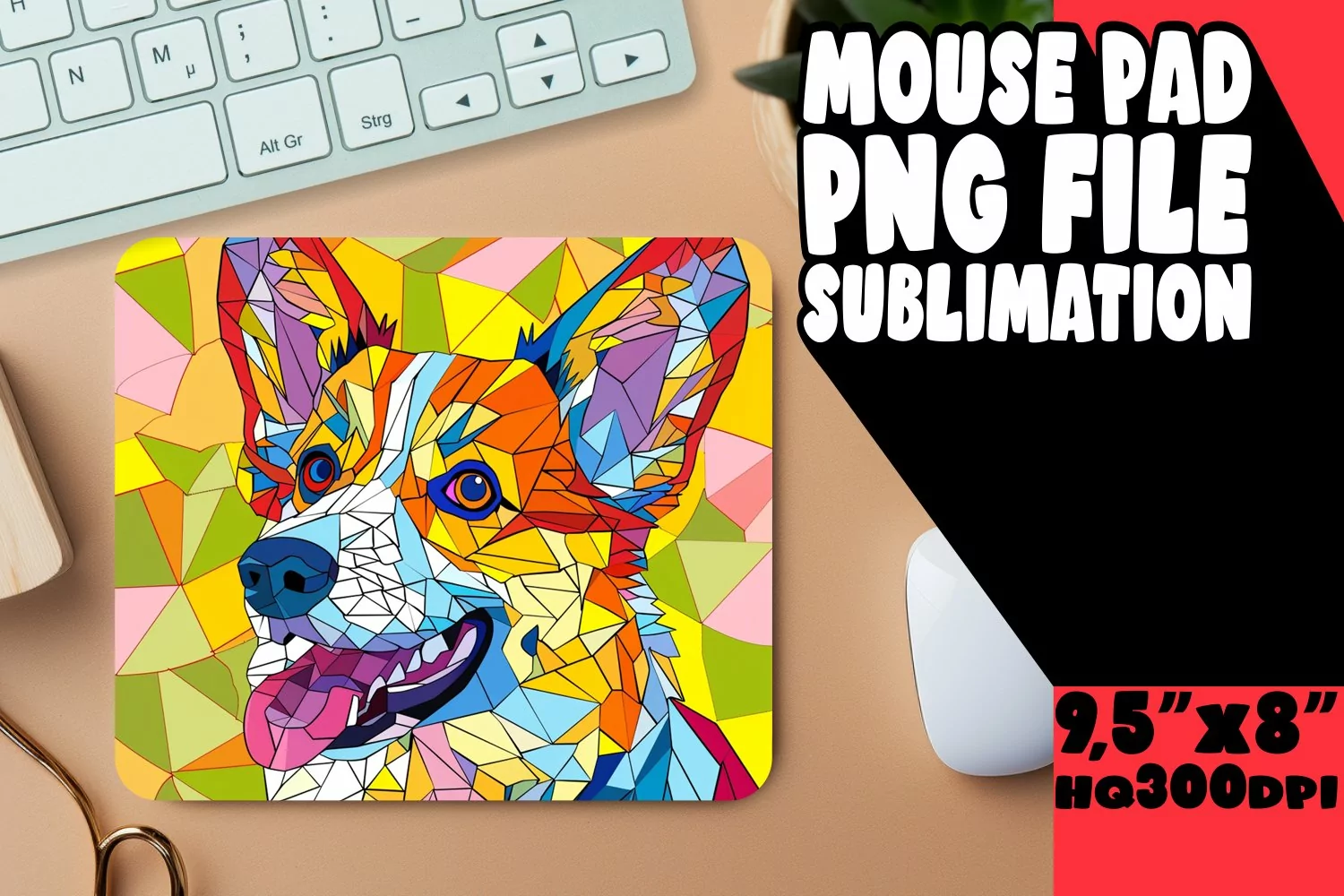 Bright and Bold Abstract Dog Mouse Pad PNG example image 1