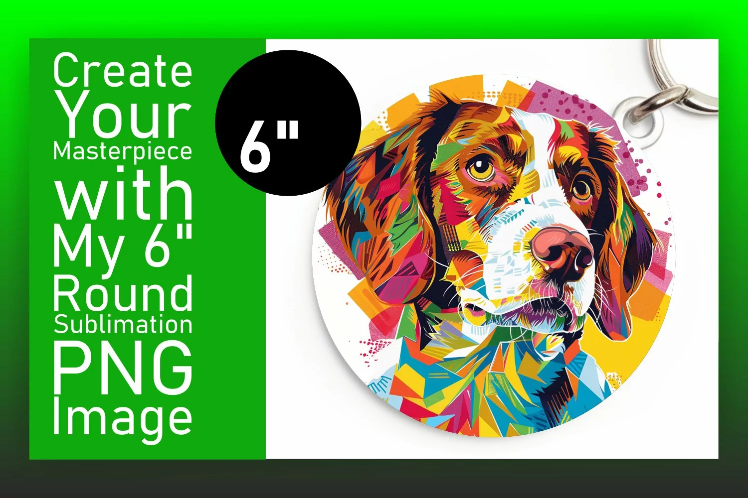 Creative Abstract Dog Round Design Keychain Sublimation