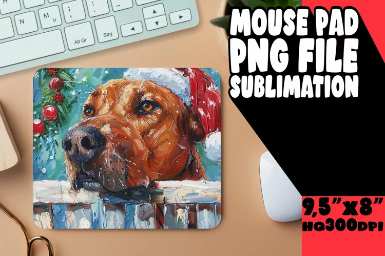 Festive Mouse Pad Sublimation Peeking Dog Winter Design