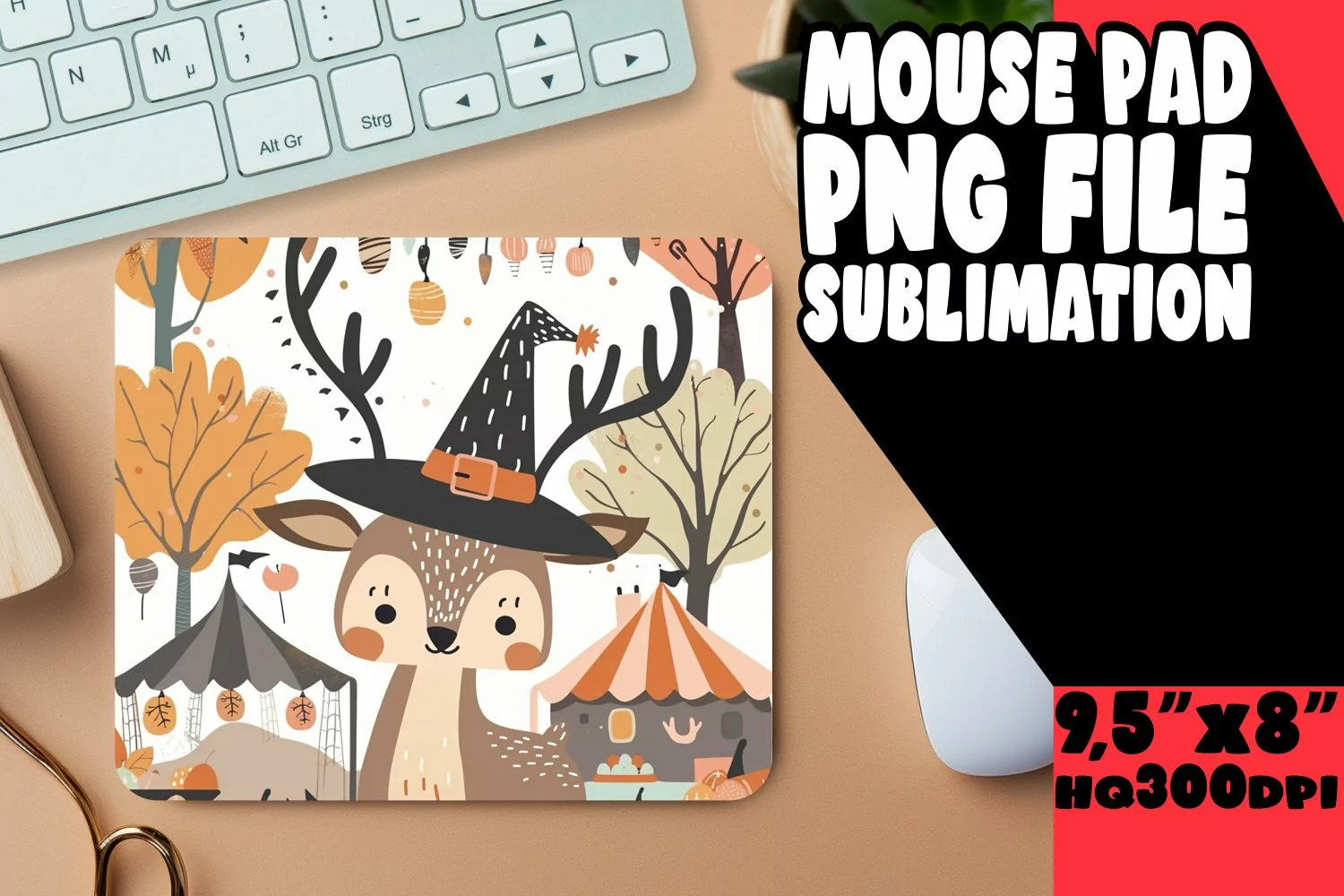 Autumn Boho Animal Mouse Pad Design PNG example image 1