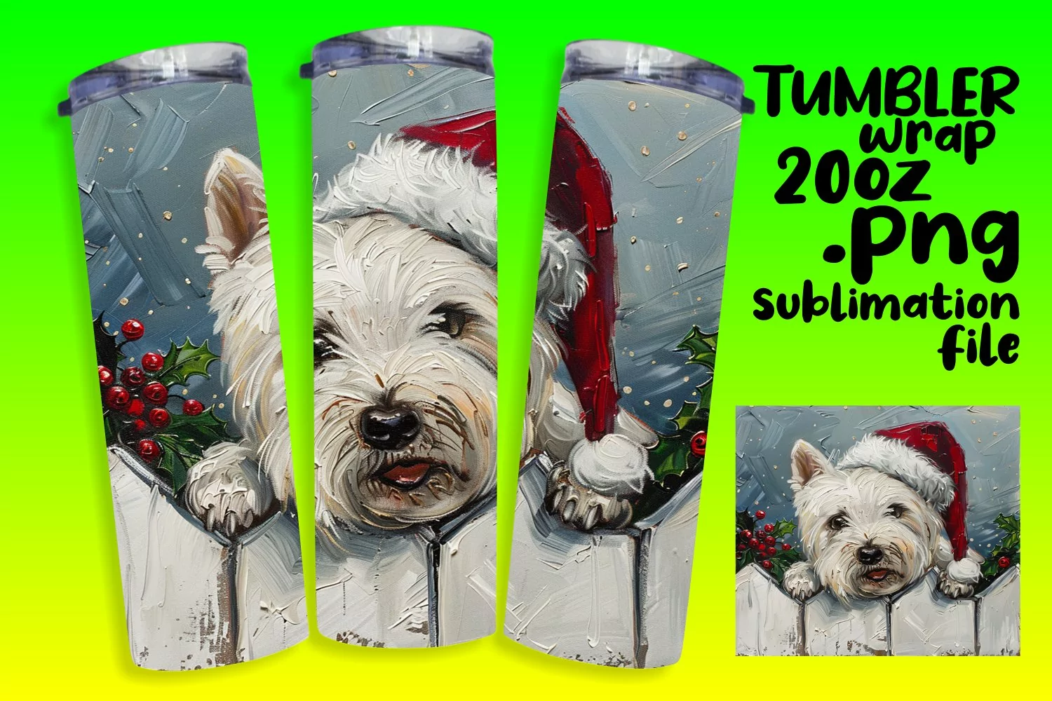 Similar Design Products to Festive Peeking Dog Sublimation Winter Tumbler Wrap Art
