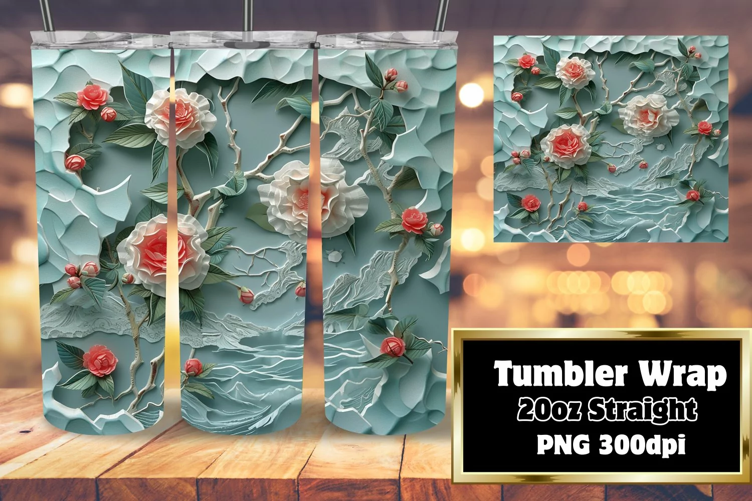 3D Flower in Hole Wrap - Sublimation Design for Tumblers