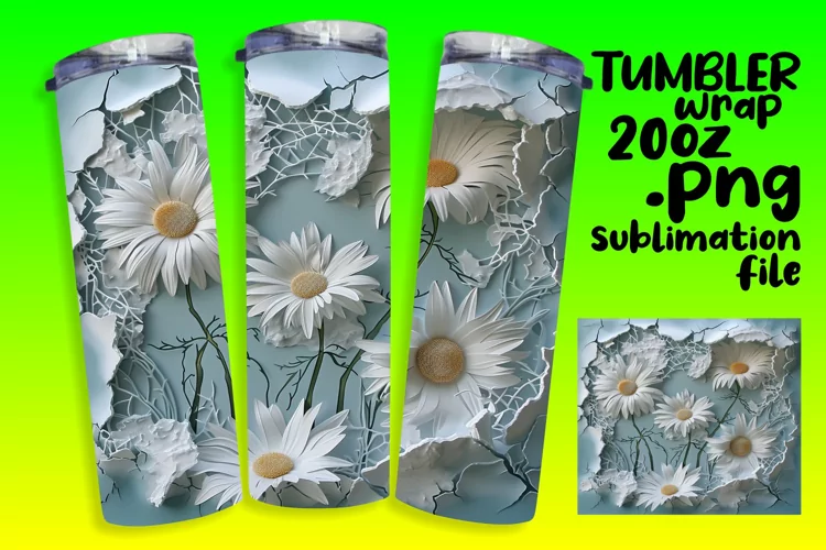 3D Flower in Hole Sublimation Wrap for 20oz Tumblers