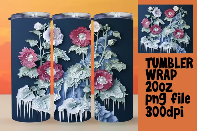 3D Flower Hole Design - 20oz Tumbler Sublimation Wrap example image 1