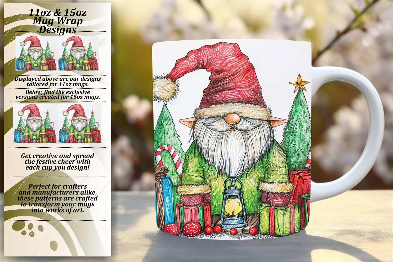 Holiday Mug Wrap - Watercolor Art Sublimation 11oz 15oz example image 1