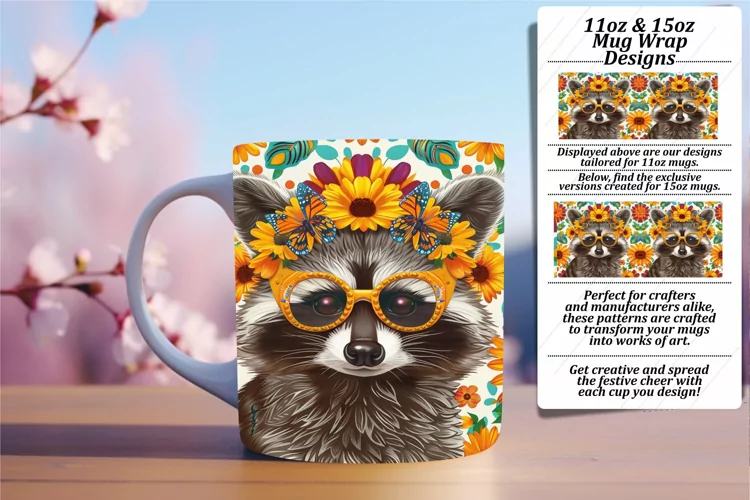 Raccoon with Floral Wrap for 11oz/15oz Mug Sublimation example image 1