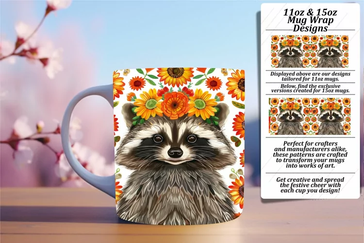 Similar Design Products to Colorful Raccoon with Blooms Mug Wrap Sublimation