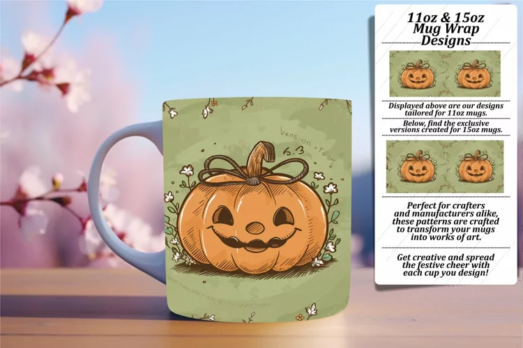 Autumn Vibes Pumpkin Mug Wrap Sublimation 11oz 15oz example image 1