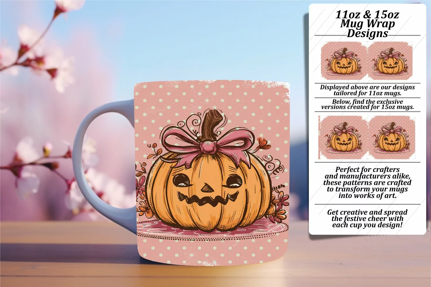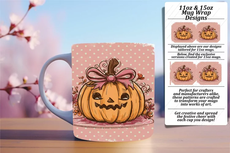 Pumpkin Mug Wrap Sublimation Design for Autumn