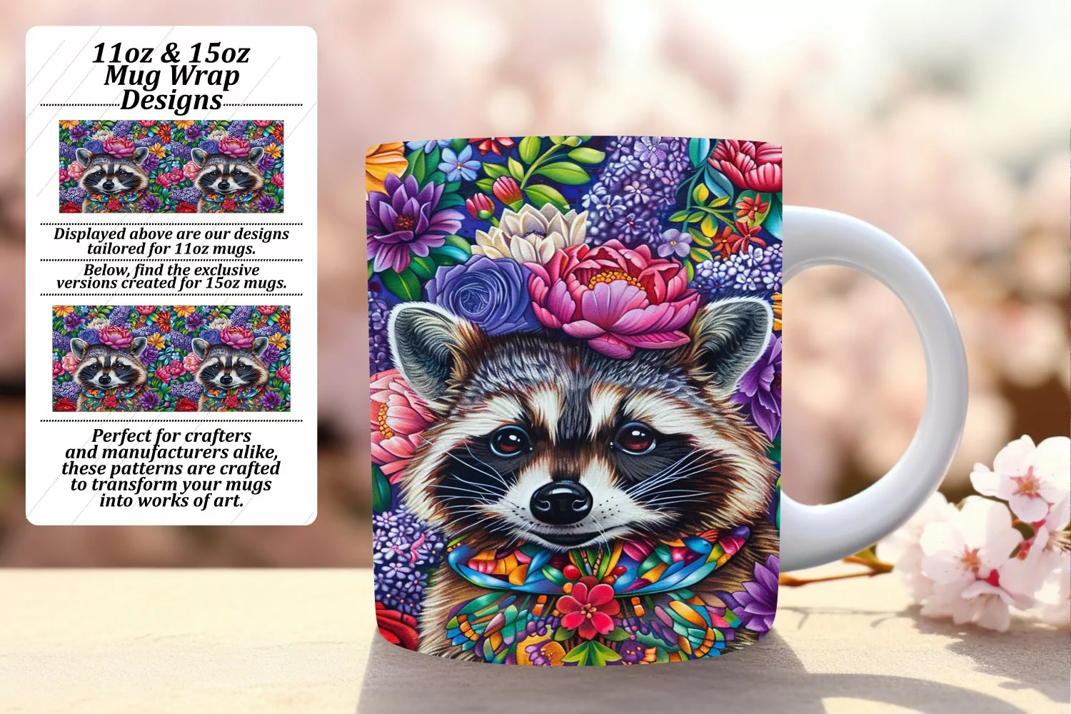 Similar Design Products to Raccoon with Flowers Mug Wrap for Sublimation