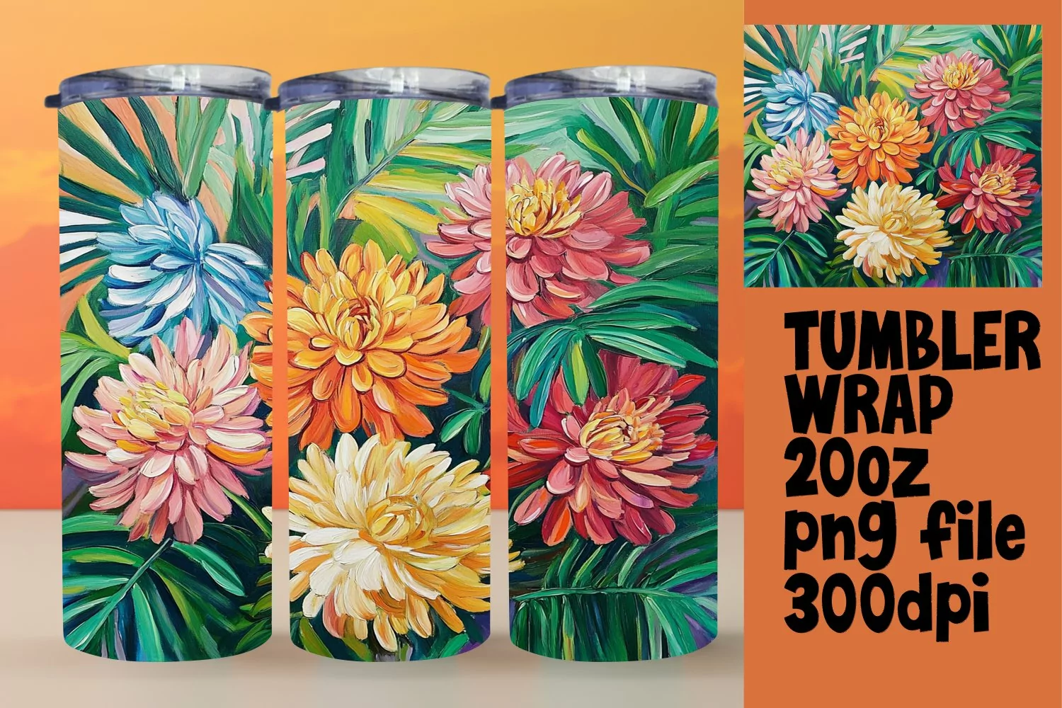 Stunning Flower Oil Painting Wrap for Tumblers