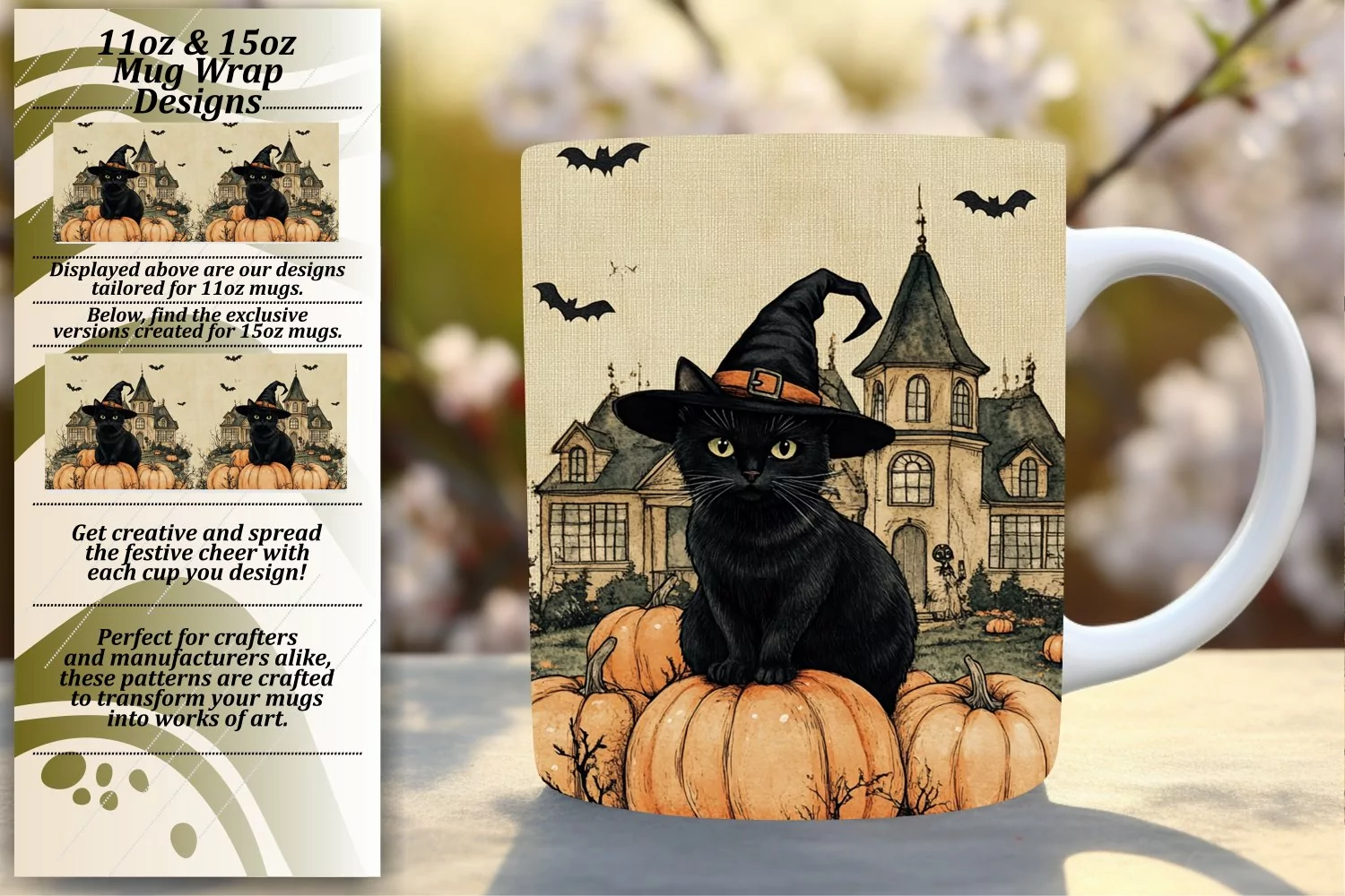 Spooky Cat Mug Wrap Sublimation for Autumn - 11oz/15oz