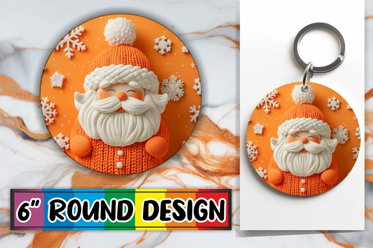 Santa Claus 3D Round Design Sublimation for Christmas