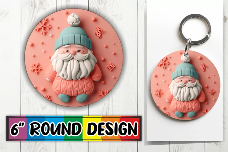3D Santa Claus Round Design Christmas Theme Sublimation