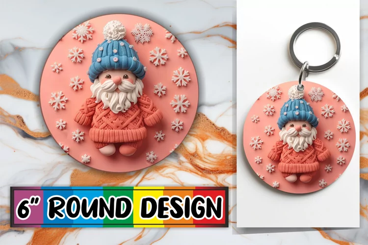 Holiday 3D Santa Claus Sublimation Wrap for Keychain Round