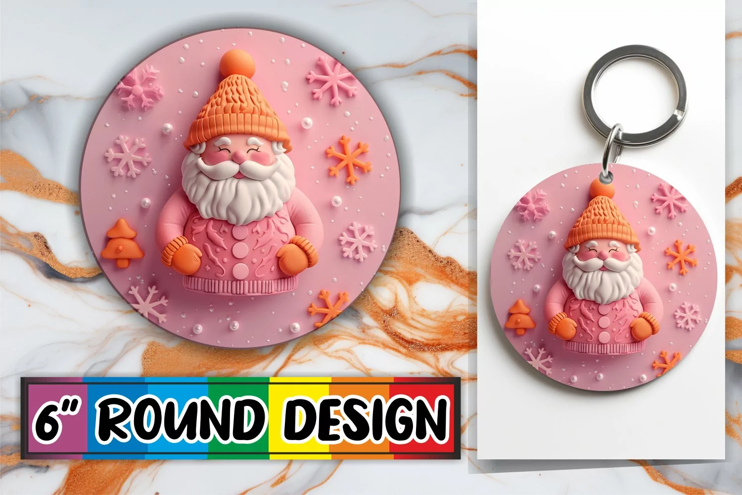 Santa Claus Round Design Sublimation Holiday 3D example image 1