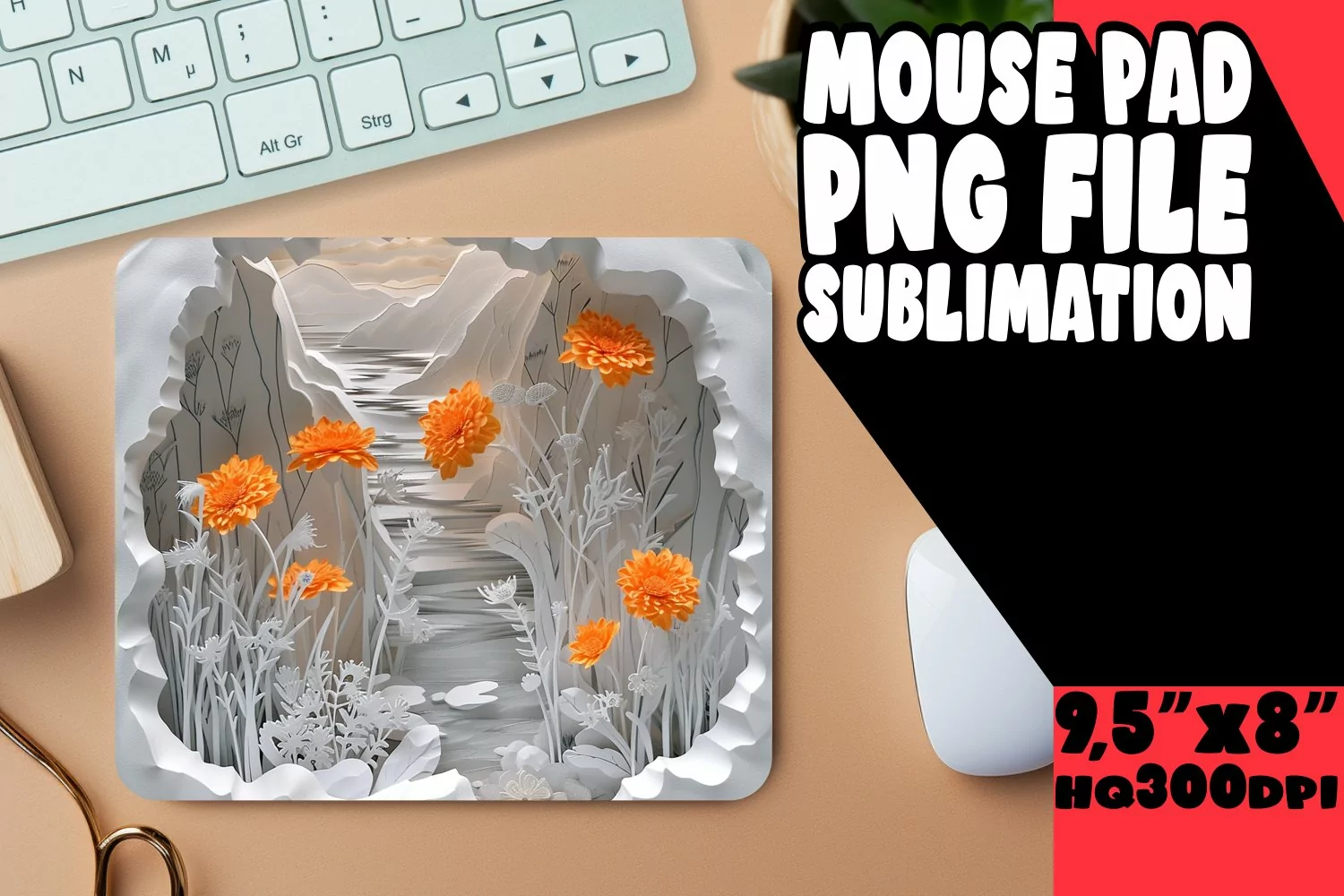 Mouse Pad Sublimation 3D Flowers in Hole Design PNG example image 1