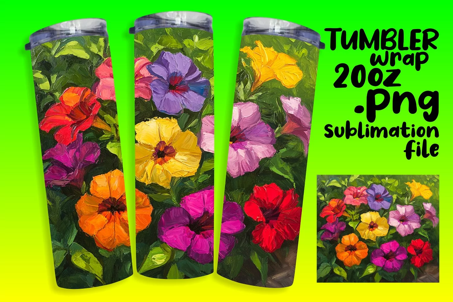 Sublimation Tumbler Wrap with Elegant Oil Flower Art example image 1