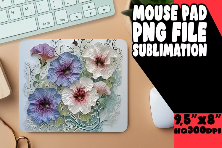 Sublimation 3D Flowers in Hole Mouse Pad PNG example image 1