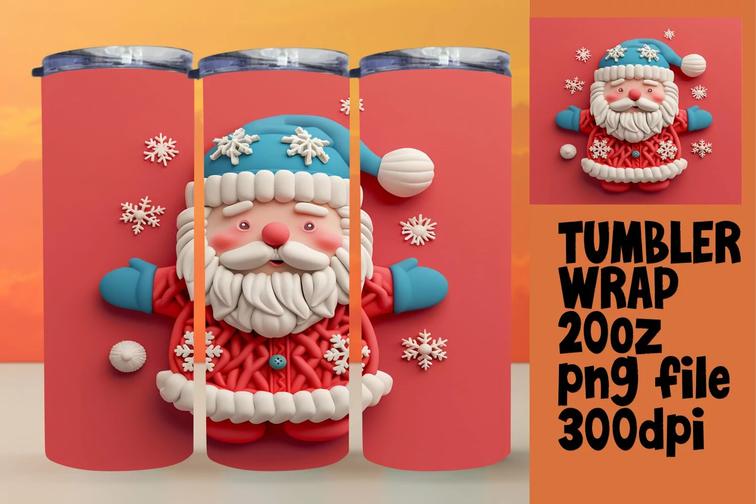 3D Santa Claus Tumbler Wrap for Sublimation - Christmas example image 1