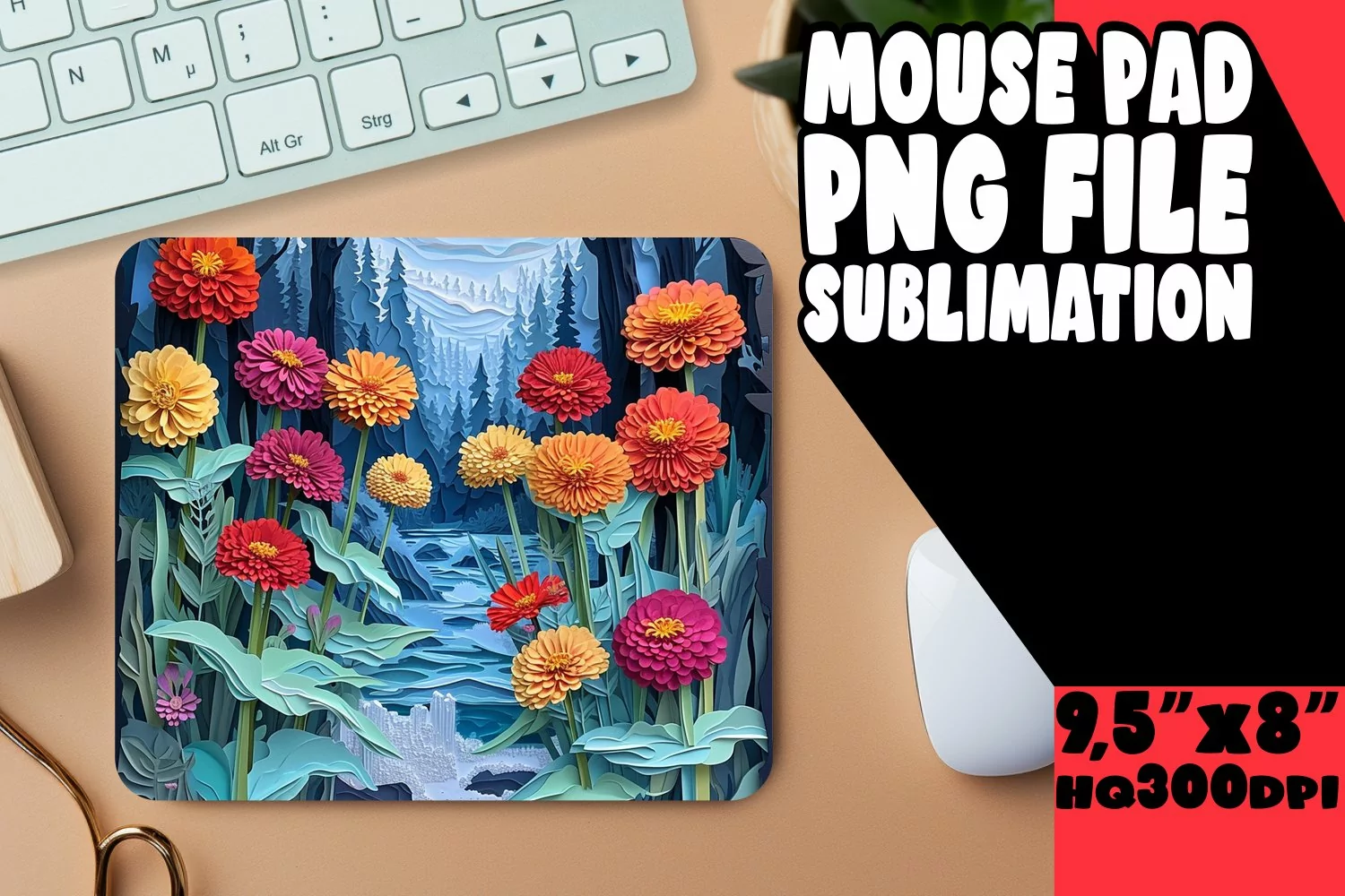 3D Flower Hole Sublimation for Mouse Pad Cups PNG example image 1