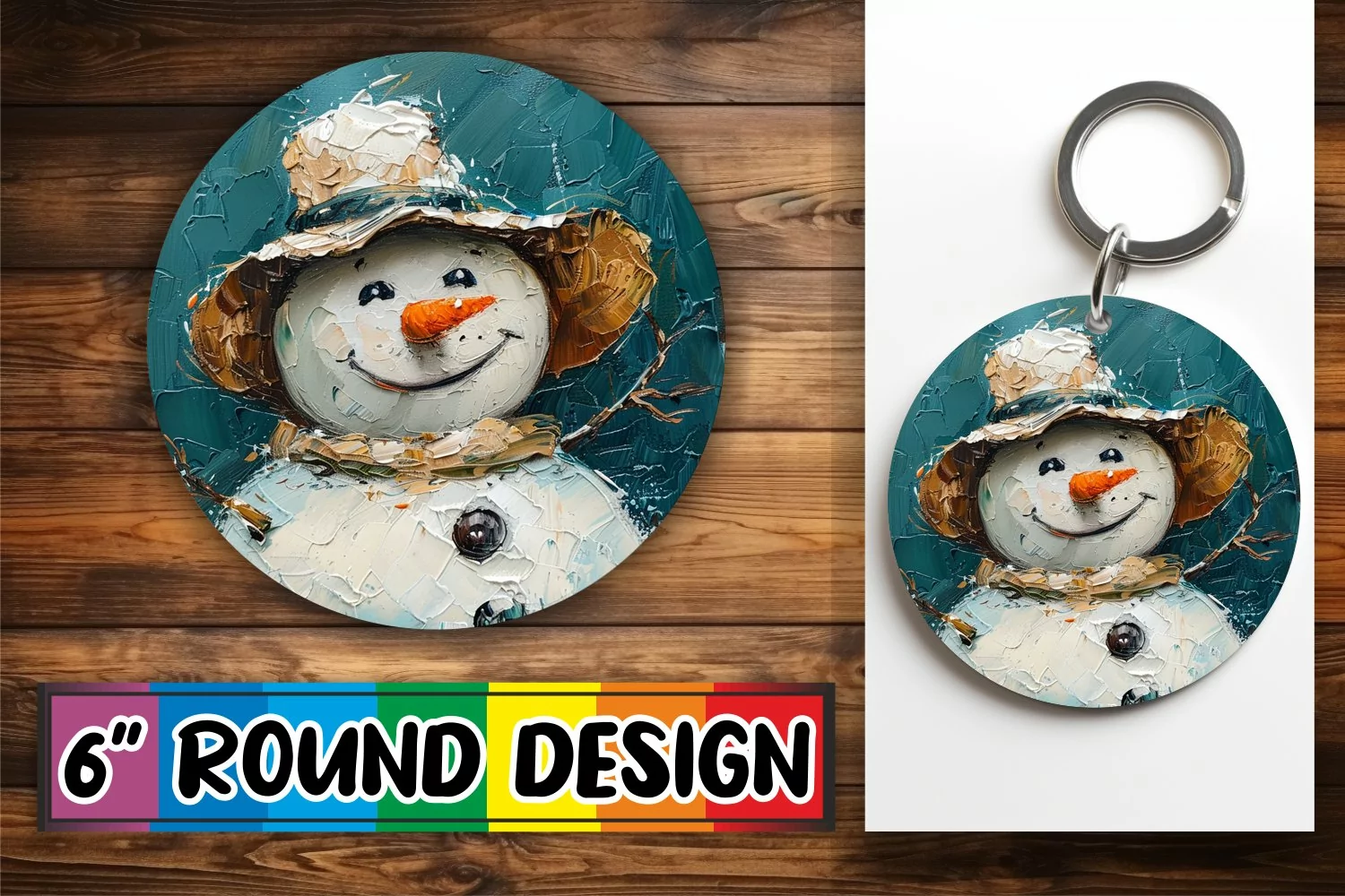 Snowman Sublimation Winter Keychain Round Design example image 1