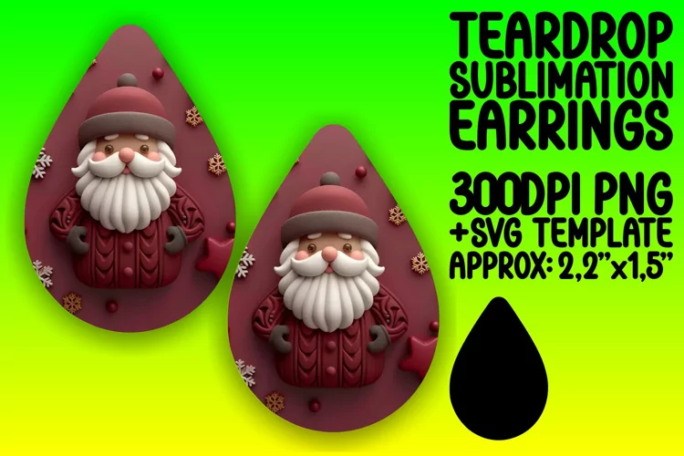Similar Design Products to Winter 3D Santa Claus Teardrop Earrings Sublimation