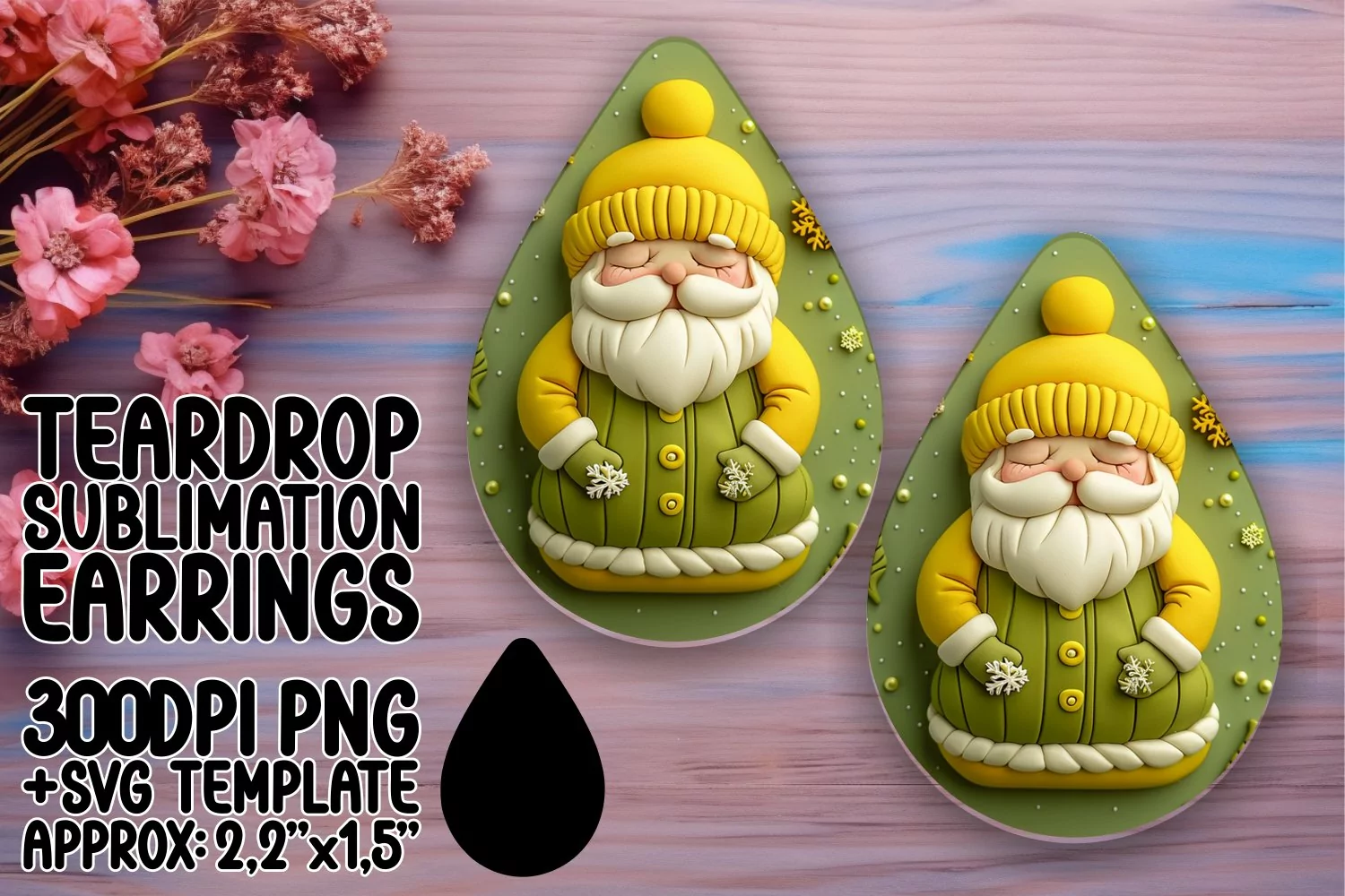 Christmas Gnome Sublimation Design Floral Earrings Teardrop Earrings Santa Claus Png Gnome Png Teardrop Sublimation Christmas Teardrop Earrings Teardrop Earring Sublimation Design Teardrp Earrings Template
