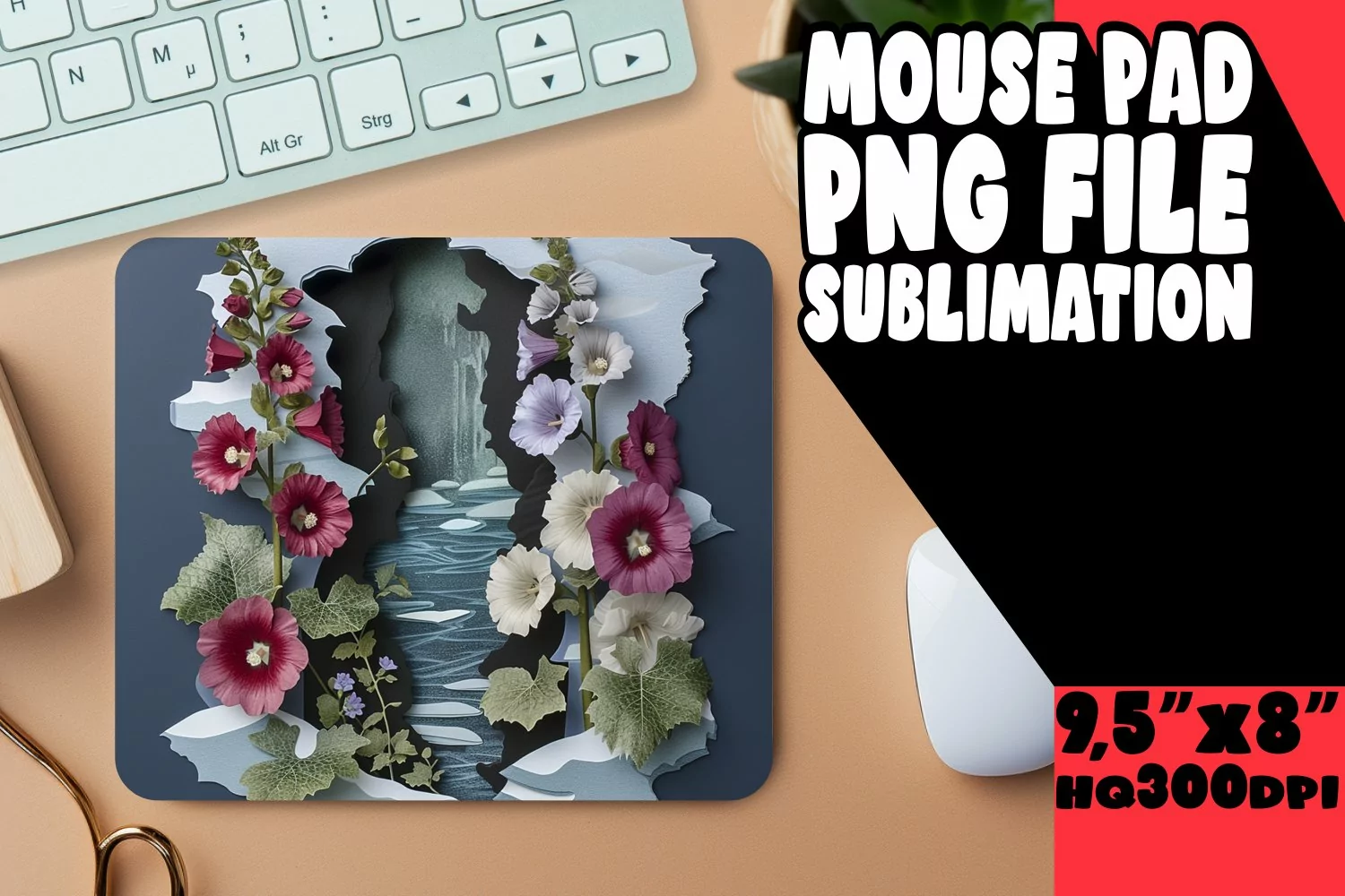 3D Flower in Hole Mouse Pad for Sublimation PNG example image 1